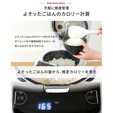 おむすび/冷凍ごはん/丼/カレー/すし飯/食物繊維米■カロリー表示機能よそったご飯のカロリーを表示するので、ダイエットなどでカロリーが気になる方におすすめです。